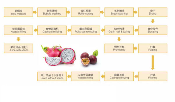 passion fruit and dragon fruit processing and filling production line